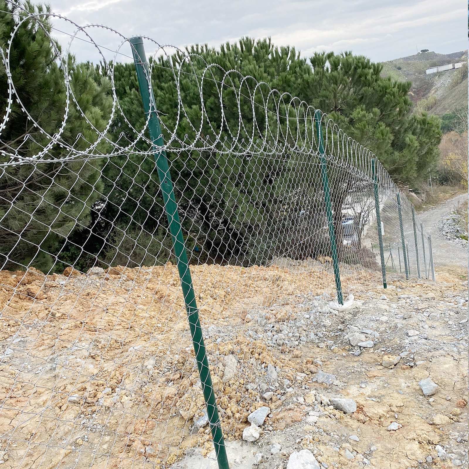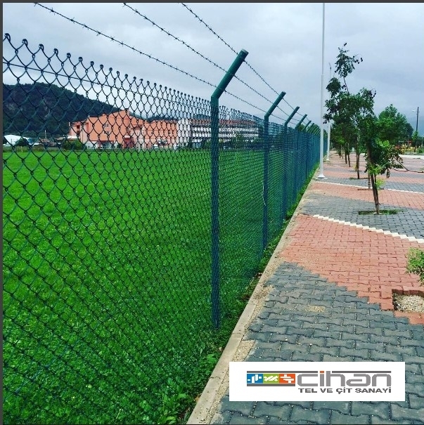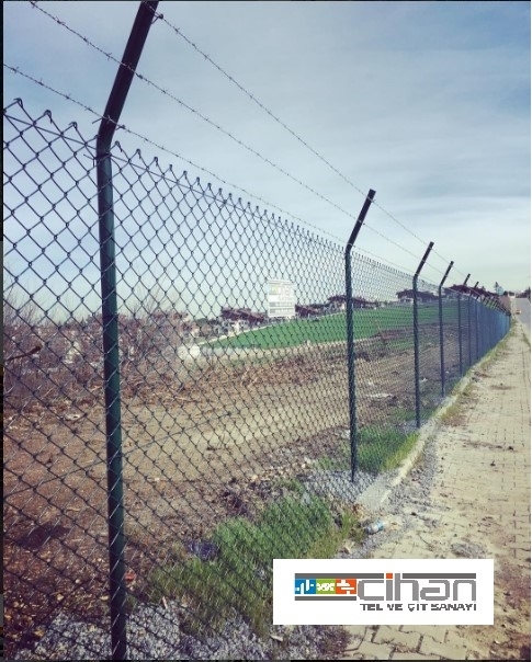 Dikenli tel; dikenli tel iki telin burulması ile oluşur belli aralıklarda burulan kısımda diken telleri yerleştirilir. Tüm dikenli tel üretimi özel otomatik makinalar ile üretim tesisimizde gerçekleşmektedir. Boru direkli çitlerin boyun kısmı eğri bölümdür bu kısma müşteri isteğine bağlı iki sıra üç sıra şeklinde düz hat dikenli tel bağlama teli ile beton direkli çitin boyun kısmına bağlanır.