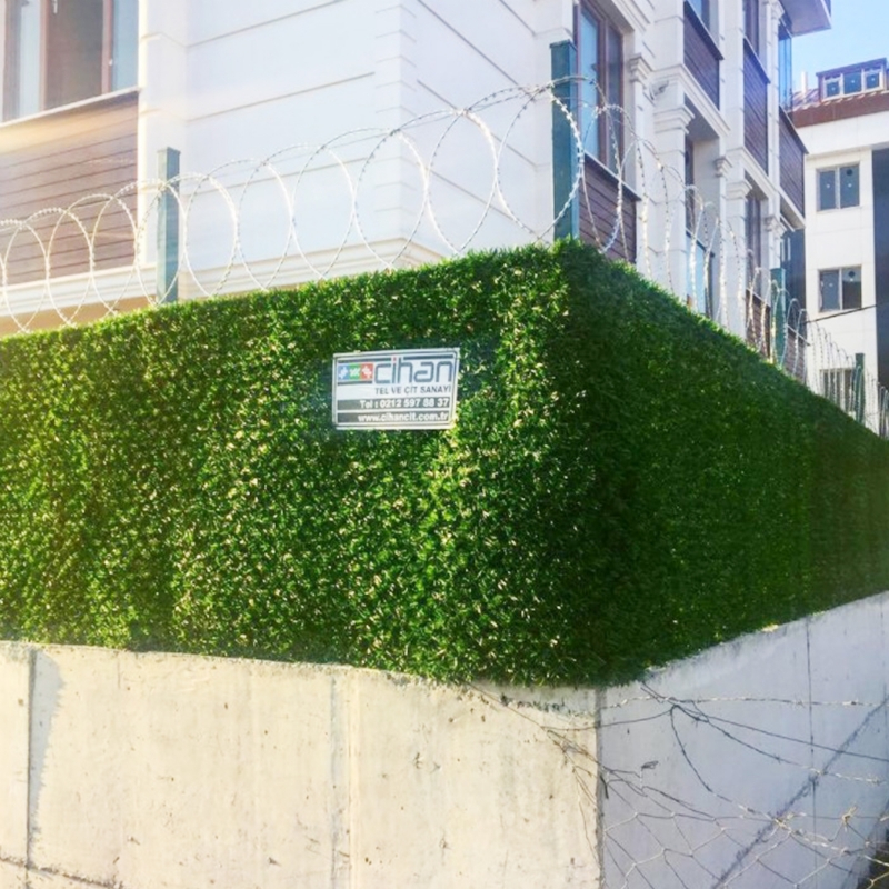Suni çim çit güzel bir görünüm sunan ve aynı zamanda doğa dostu bir üründür. Özellikleri ile fark oluşturan plastik çim çit oldukça rövanşta olan bir üründür. Çim çit oldukça dayanıklı bir üründür. Darbelere karşı dayanıklı içyapısı ile çim çit montaj yapıldığına rijit bir görüntü sağlamaktadır. Çim çit montajından sonra keyifli bir kullanımı vardır. Çim çit montajı yapıldığı yeri korunaklı bir hale getirir. Birçok alanda kullanılan dekoratif çim çit güzel görünüm ve işlevsel özelliklerini sunar. Malzemenin ayrıcalıklarından ve avantajlarından yararlanmak için size en uygun ölçü ve ebatlardaki çim çiti tedarik etmeniz gerekmektedir. Çim çitin içinde bulunan çim tel çift sarmal olup oldukça güçlü bir yapıya sahiptir. Küçük göz araları sayesinde görüntüyü azaltıp mahremiyet oluşturmaktadır. Çim çitin en önemli özelliklerinden biri olan mahremiyet oluşturması çim çiti çok tercih edilen bir ürün haline getirmiştir.